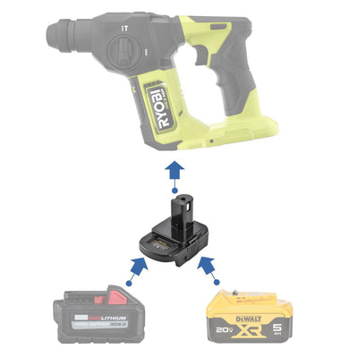 Unlock the full potential of your Ryobi ONE+ 18V system with our battery adapters. Use Ryobi batteries on other brand tools, or keep your Ryobi tools powered with compatible battery platforms. Engineered for reliability and durability, these adapters help you save money and expand your tool options.