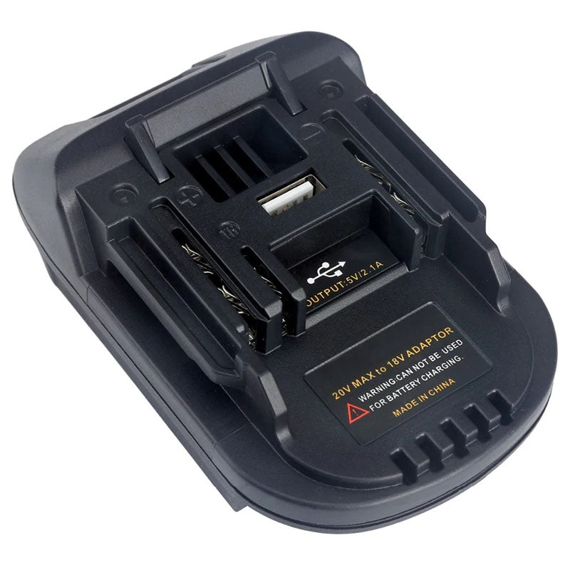Constructed from durable molded ABS and equipped with high-conductivity pure copper terminals, the adapter delivers consistent current transfer and dependable performance under demanding jobsite conditions. Finished in a solid black housing, it features an integrated USB port for convenient device charging. Compact and lightweight at just 101g, it is built for everyday professional or workshop use.