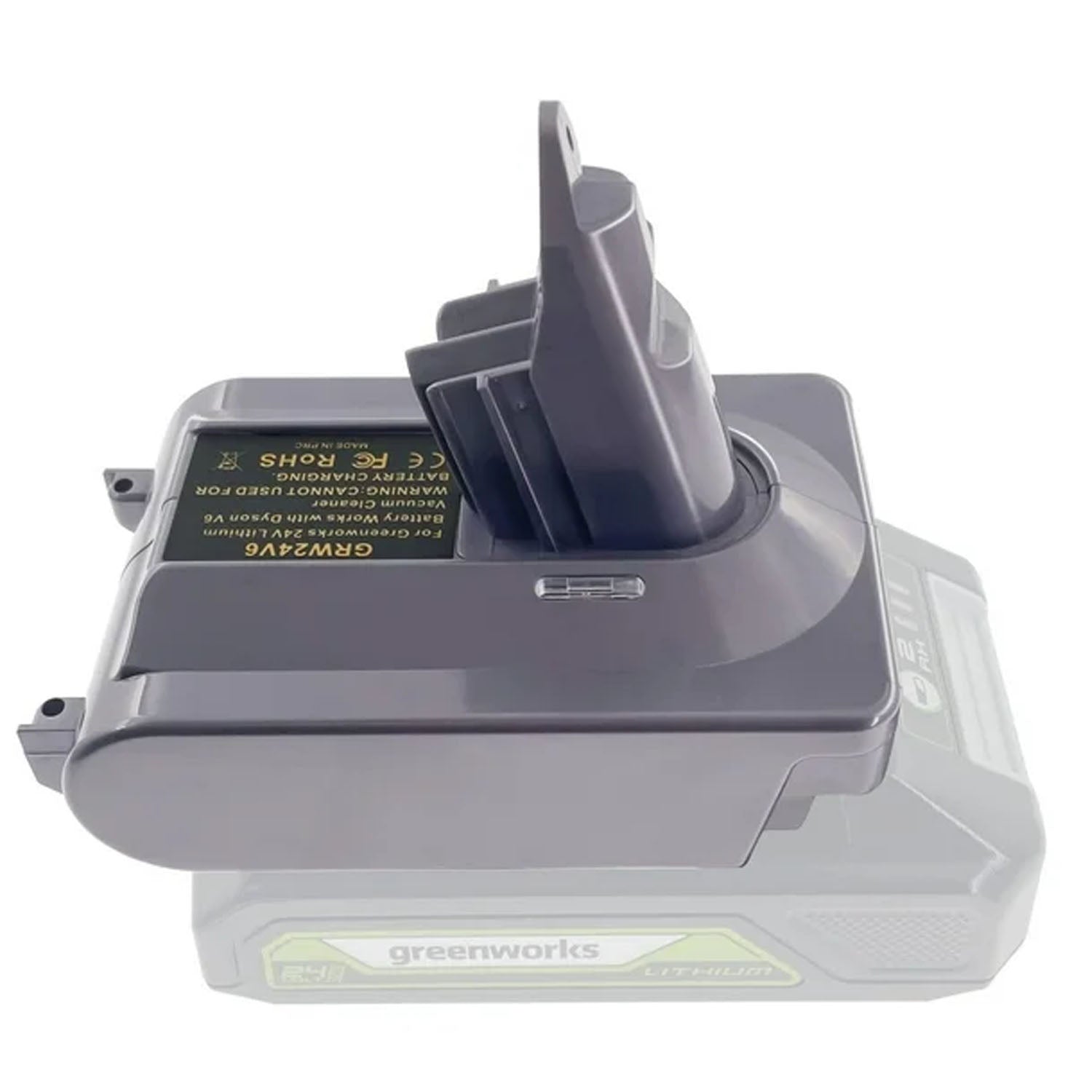 The Greenworks 24V to Dyson V6 Battery Adapter lets you power your Dyson V6 cordless vacuum with the same Greenworks 24V batteries you already use for your tools. It’s the perfect way to replace expensive Dyson battery packs and keep your vacuum performing at full power. Built for a snug fit and efficient current flow, this adapter delivers reliable suction and extended runtime, helping you clean longer while spending less.