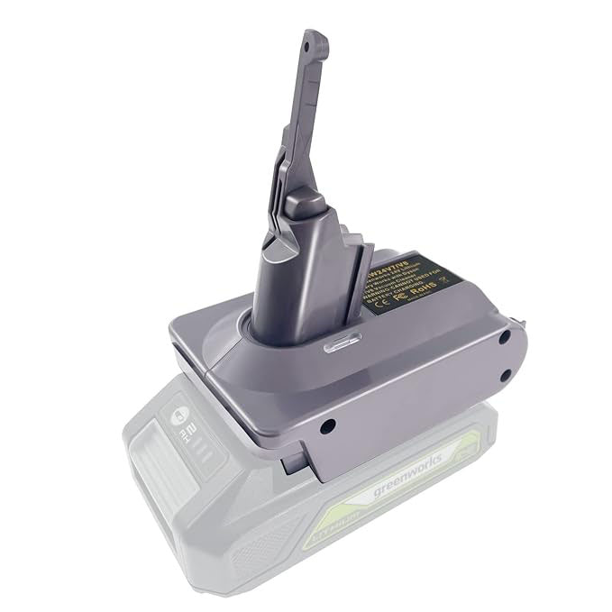 The Greenworks 24V to Dyson V8 Battery Adapter gives your Dyson V8 cordless vacuum new life by letting it run on Greenworks 24V lithium-ion batteries. Built for a perfect fit and dependable power output, it replaces costly Dyson battery packs with a smart, affordable alternative. Enjoy strong suction, steady runtime, and long-lasting reliability — all powered by your Greenworks tools’ batteries.
