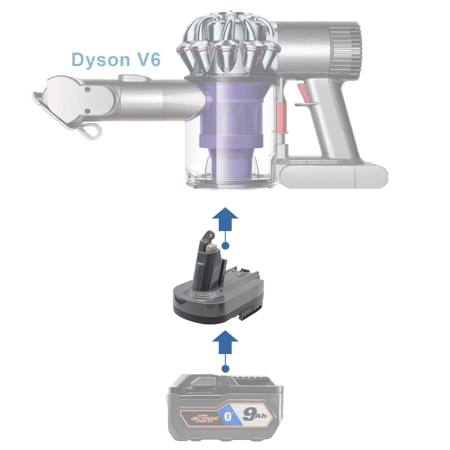 • Power your Dyson V6 vacuum with the Ridgid 18V batteries you already own
