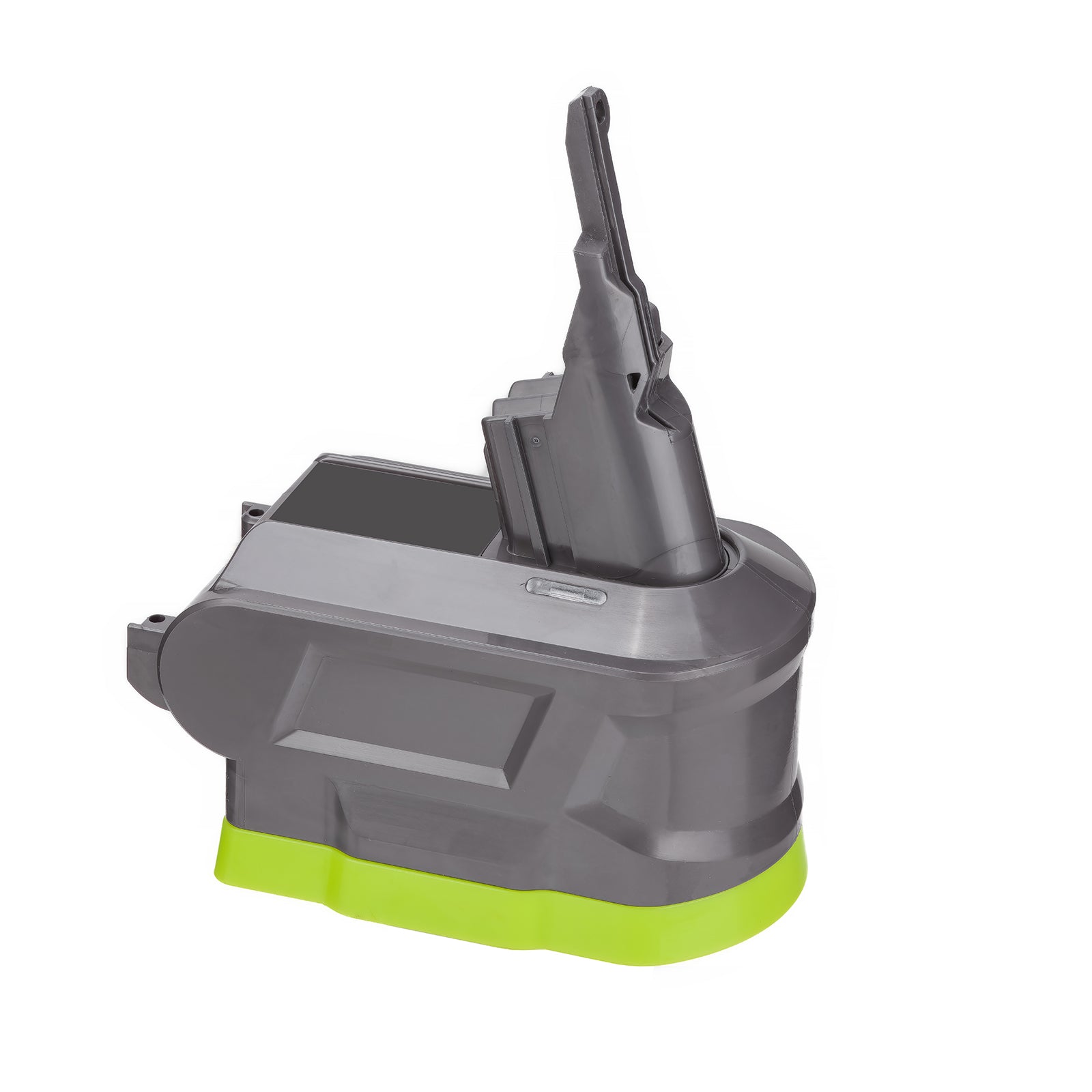 The Ryobi 18V to Dyson V8 Battery Adapter lets you power your Dyson cordless vacuum with your Ryobi 18V lithium batteries. This adapter is perfect for homeowners and professionals who already own Ryobi tools and want to make the most of their battery collection. Designed for convenience and reliability, it provides a secure fit and consistent performance — no modifications required. Enjoy extended cleaning sessions without worrying about charging multiple battery types.